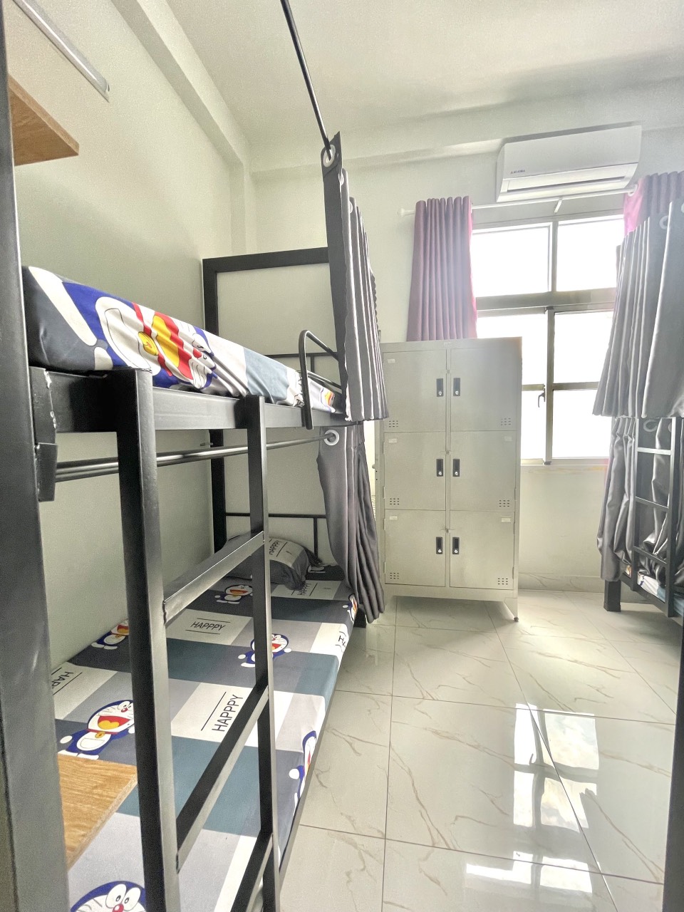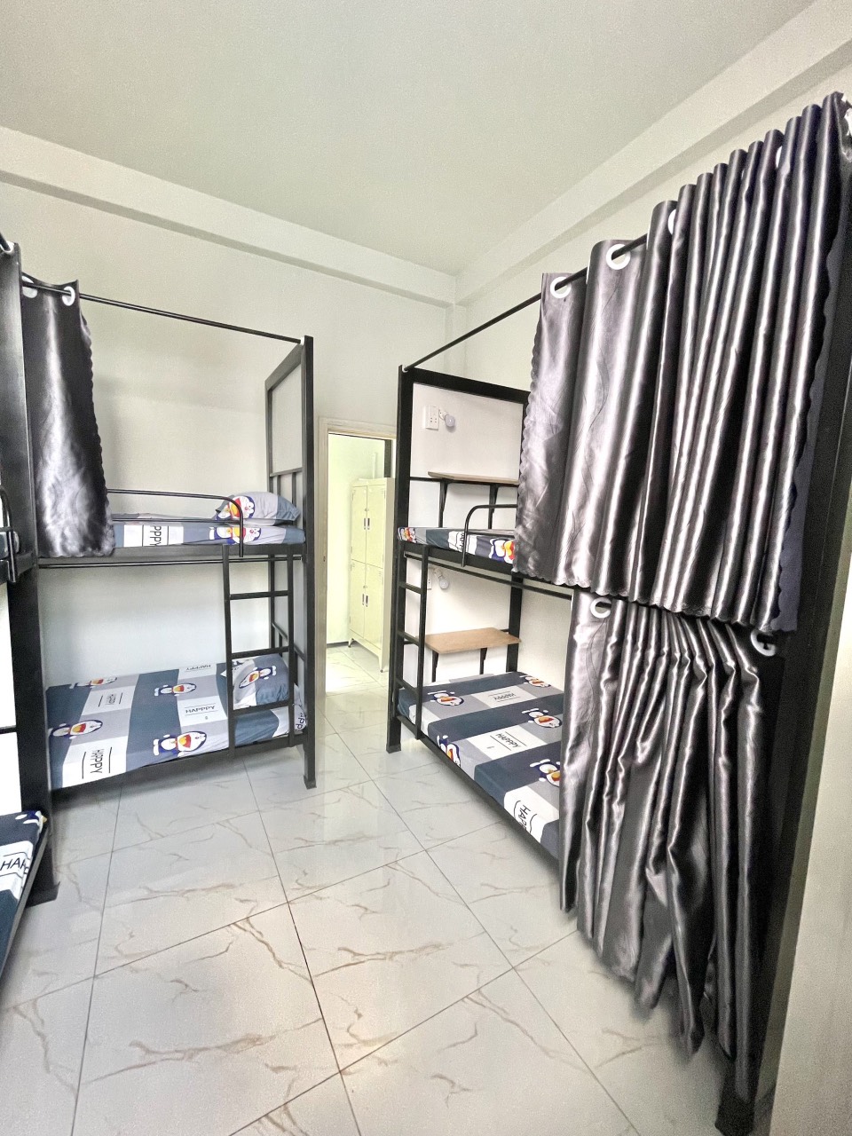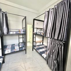 - Mỗi giường đều được trang bị bàn học xếp gọn, bóng đèn và ổ cắm vô cùng tiện cho các bạn học tập và sử dụng Laptop, di động