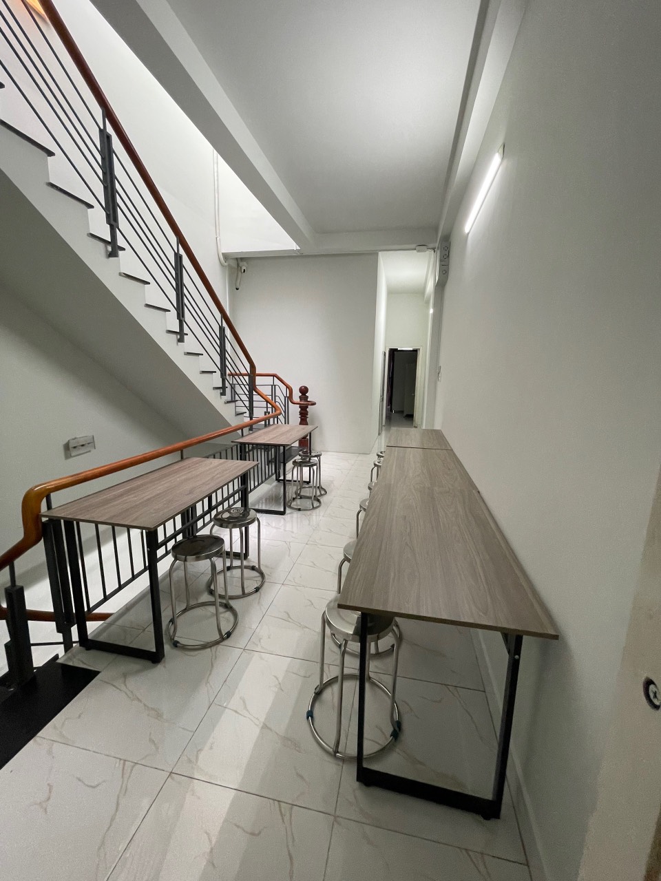 - Phòng sinh hoạt chung lớn, có sẵn bàn ghế tiện cho việc học tập và sinh hoạt, tiếp khách. Không gian yên tĩnh và thoáng mát