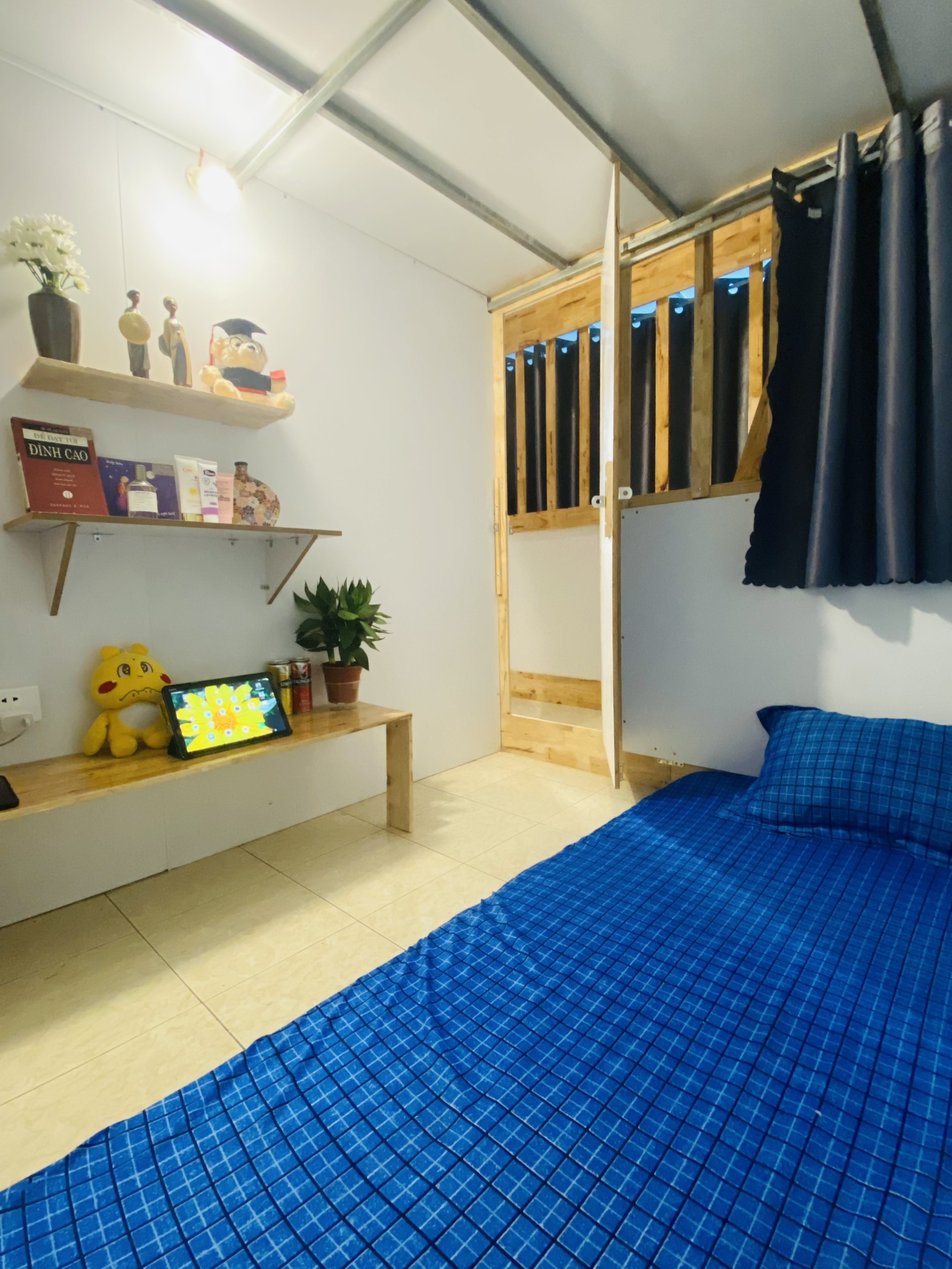 ? Full nội thất: Nệm, dra, gối, rèm, ổ điện, đèn, kệ trang trí, bàn làm việc.