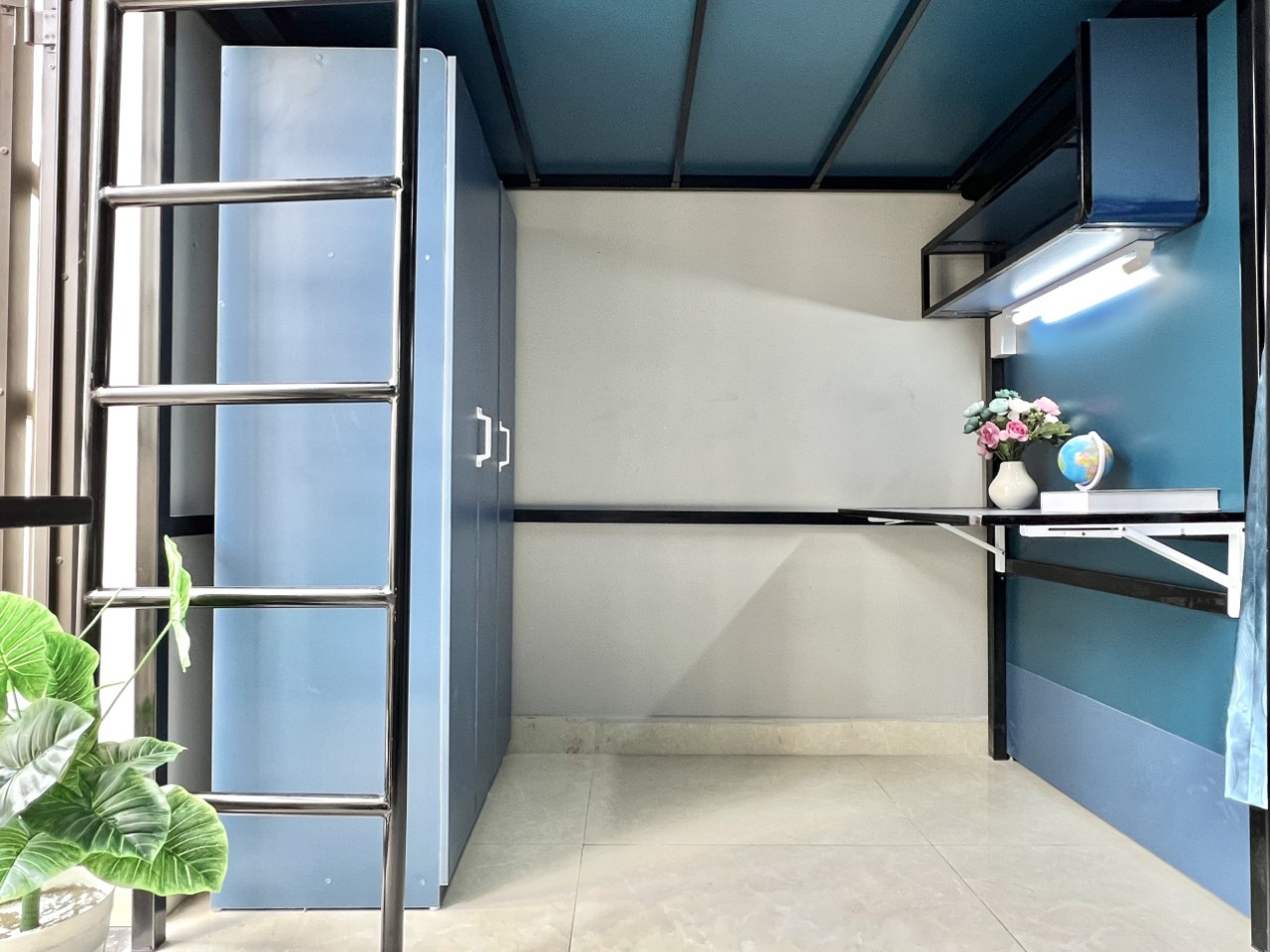 ? Đèn học và ổ cắm điện tiện lợi.