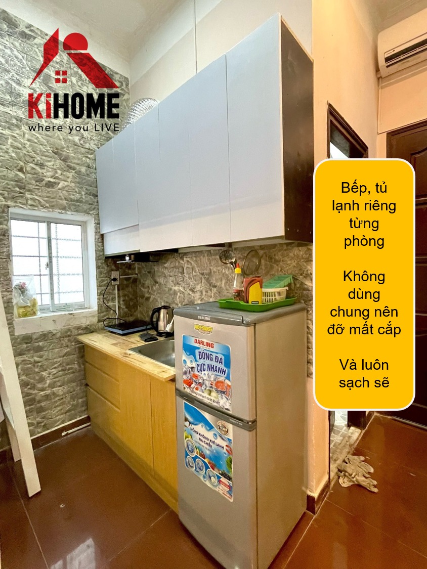 ☑️Bếp được trang bị mỗi phòng riêng, tủ lạnh cũng vậy
