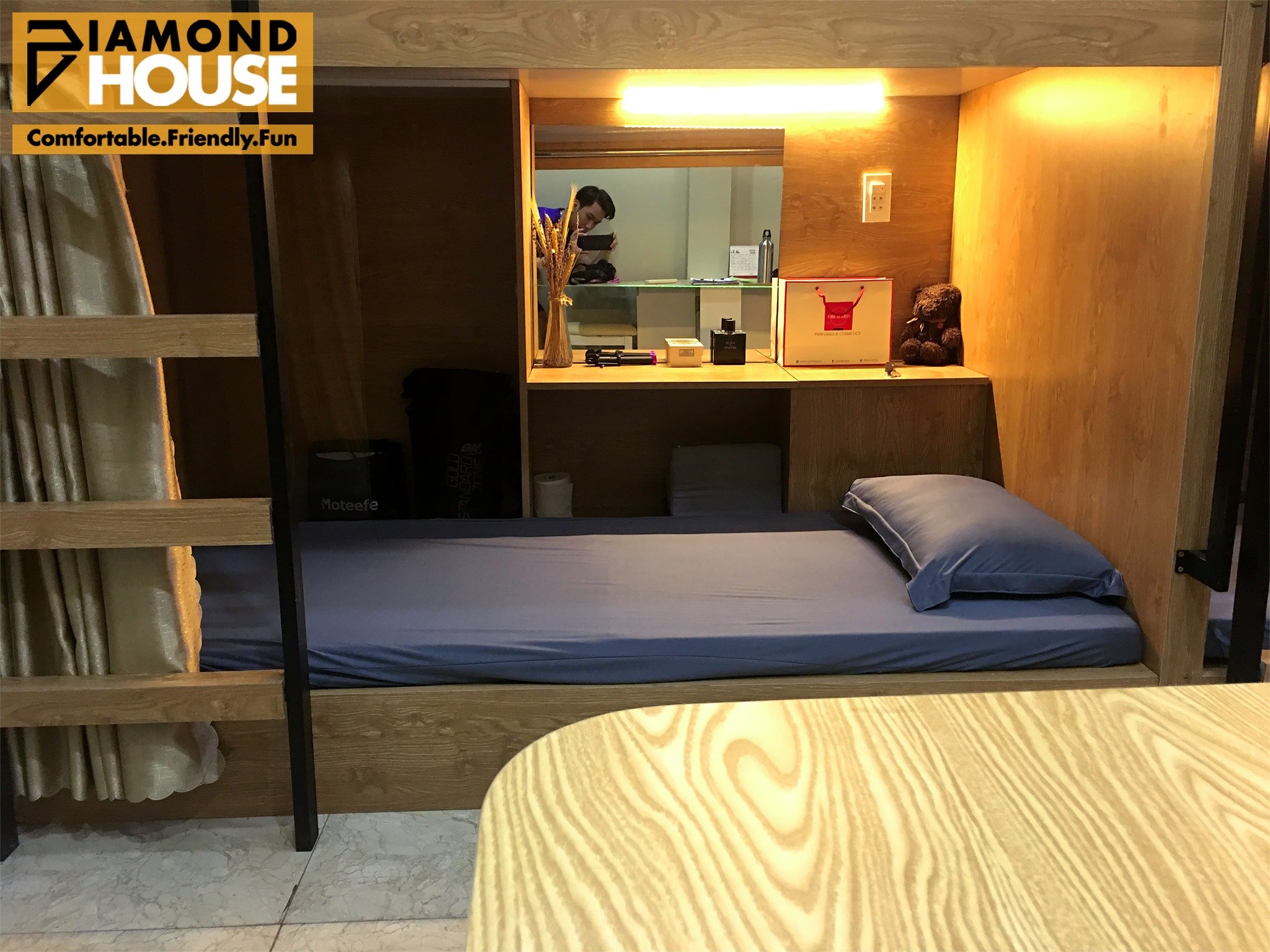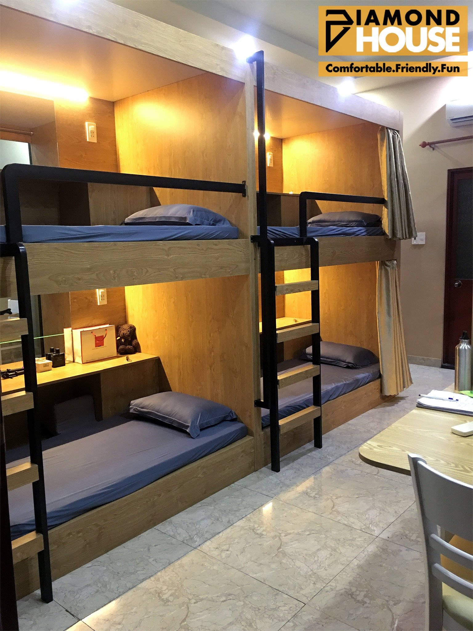 Sleepbox sang trọng, sạch sẽ và đẹp mắt tại Quận Bình Thạnh đang cho thuê với giá chỉ từ 1TR6 – 1TR9 (tuỳ theo diện tích phòng). Các tiện ích của Sleepbox bao gồm chỉ 4-6 người/phòng, giường full size với tủ cá nhân locker, bàn trang điểm, kệ sách, tủ quần áo, ngoài ra còn trang bị trọn gói bao gồm chăn, ga, gối, nệm cao cấp và toilet khép kín trong mỗi phòng.