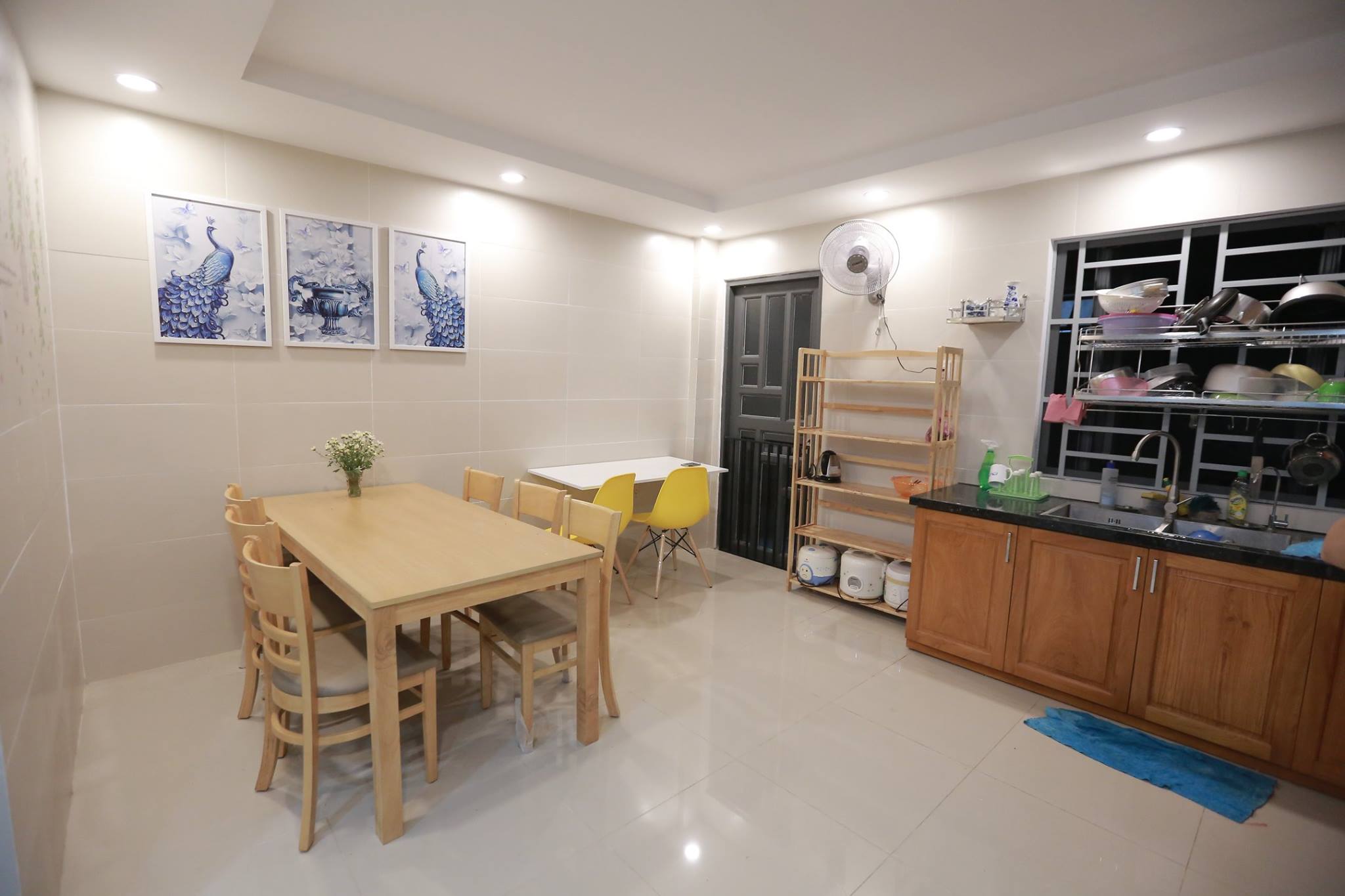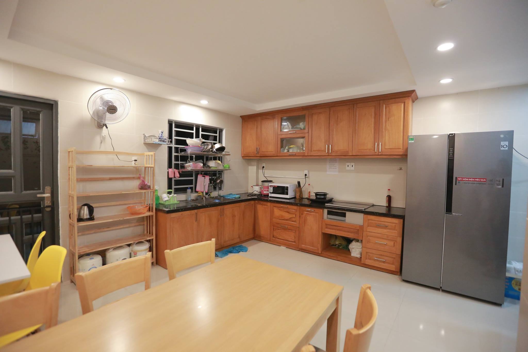 ☑️ Khu bếp nấu ăn được trang bị: Bếp từ, Tủ lạnh, lò vi sóng, bàn ăn.